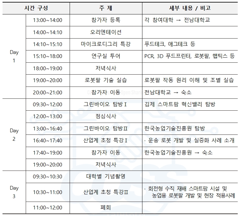 8월 5~7일 그린바이오 아카데미와 관련하여,